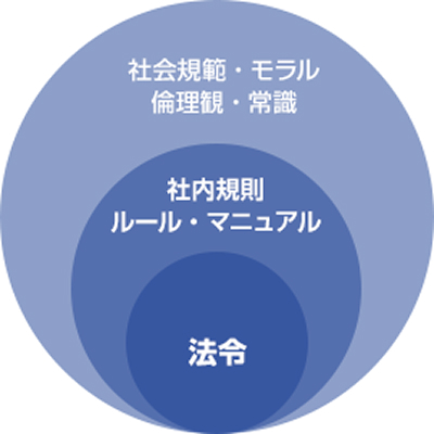 私たちは『社会への貢献』『信頼される企業』『法や精神の遵守』を基本に、コンプライアンス意識を高めています。