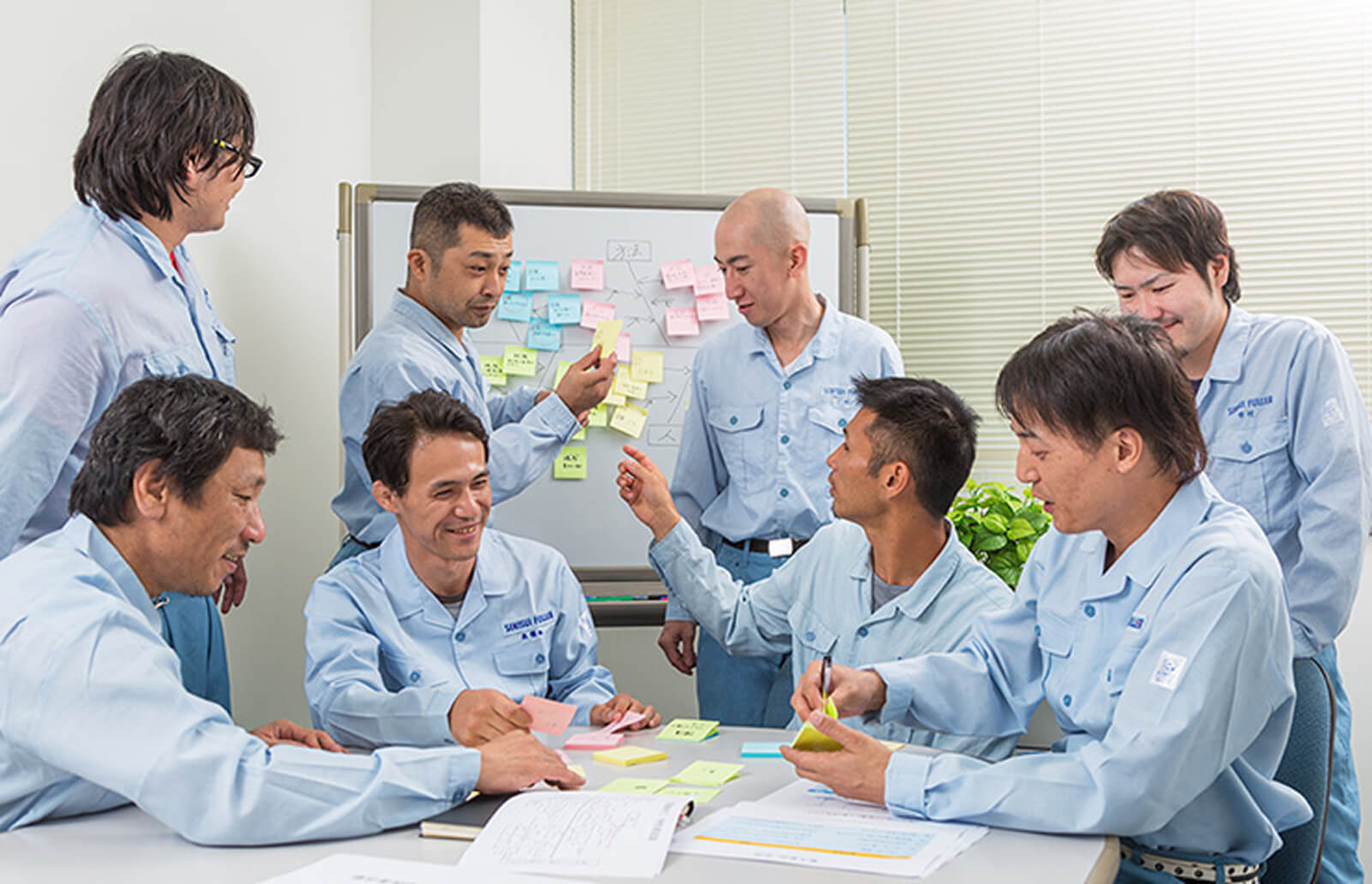 今後も、ベテラン・中堅・新人が積極的に融合し更なるSINKAを目指して、安全・品質・生産性を追求し、仕事を楽しく楽に進められるように、また、その家族を幸せに導く活動にしていきます。