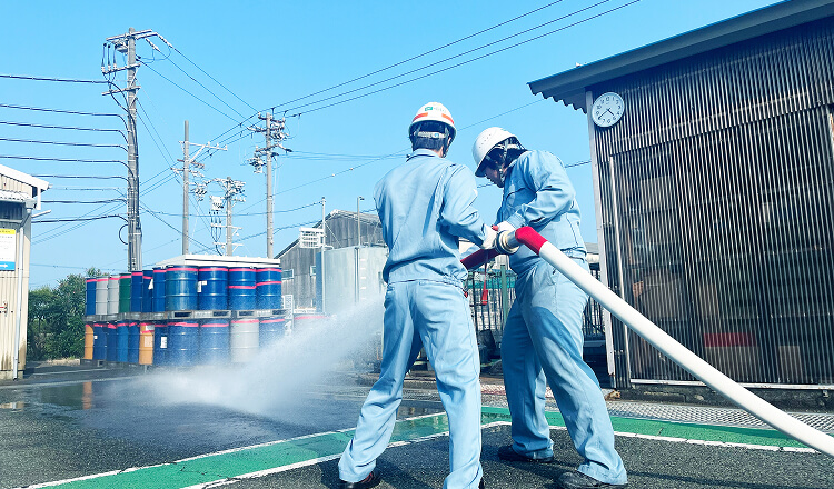 Both our Shiga and Hamamatsu Plants regularly conduct outdoor fire hydrant drills to maintain and enhance their firefighting skills.