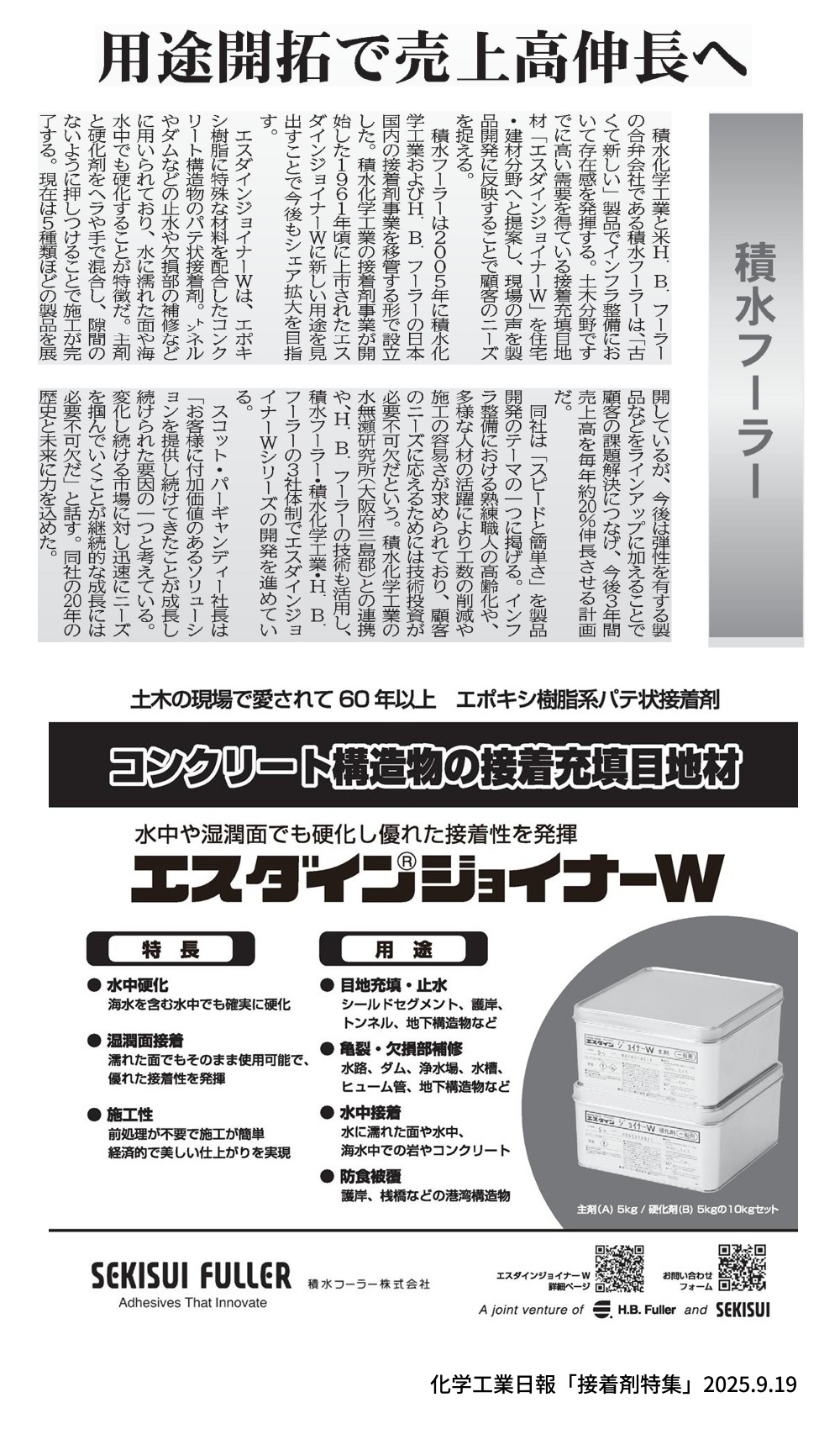 Sekisui Fuller was featured in the Chemical Daily Adhesive Special Edition published on September 19, 2025