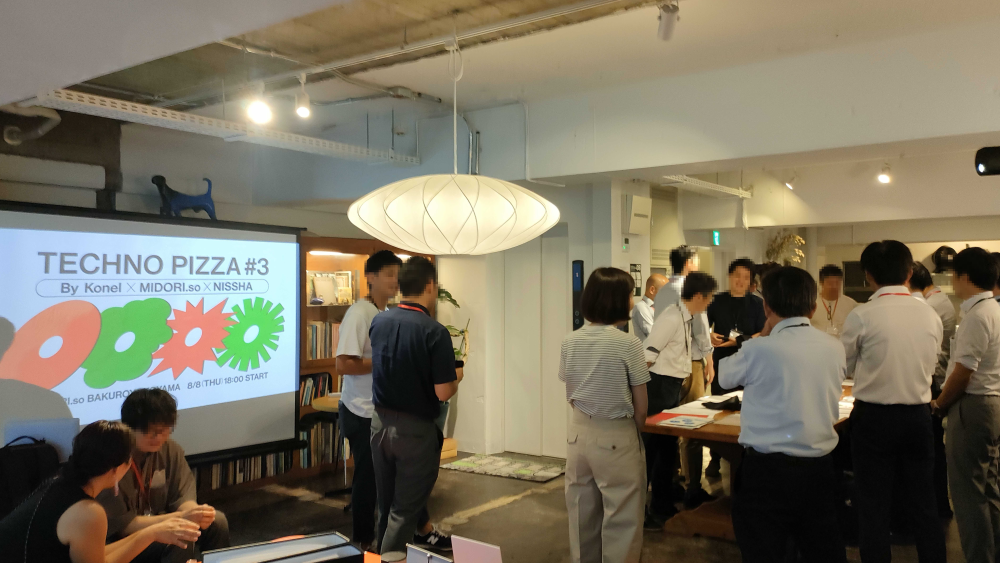 積水フーラーは、2024年8月8日(木)に東京都中央区の「MIDORI.so BAKUROYOKOYAMA」で開催された「TECHNO PIZZA」に出展しました。第3回目となる今回のテーマは「素材」。多くの素材メーカーが出展する中、積水フーラーは、自社のホットメルト製品を展示し、他の出展者との技術交流や来場者との対話を通じて、接着剤の未来の応用可能性を模索しました。