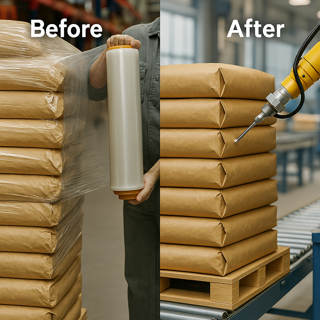 荷崩れ防止用ホットメルト:段ボール外装以外での適用